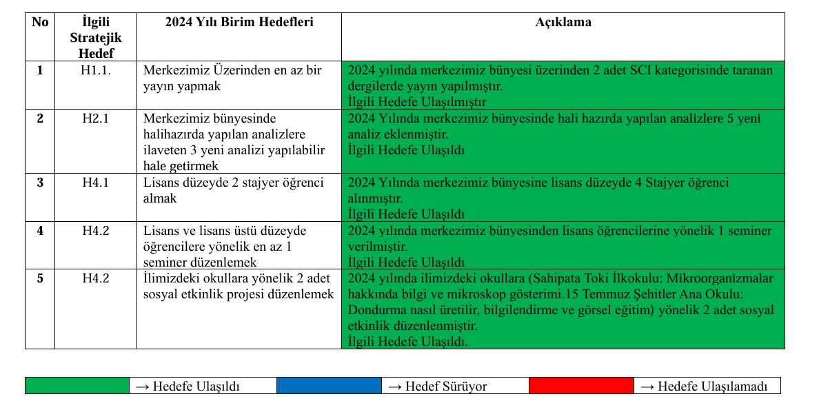 2024 YILI HEDEFLERİN GERÇEKLEŞME DURUMU