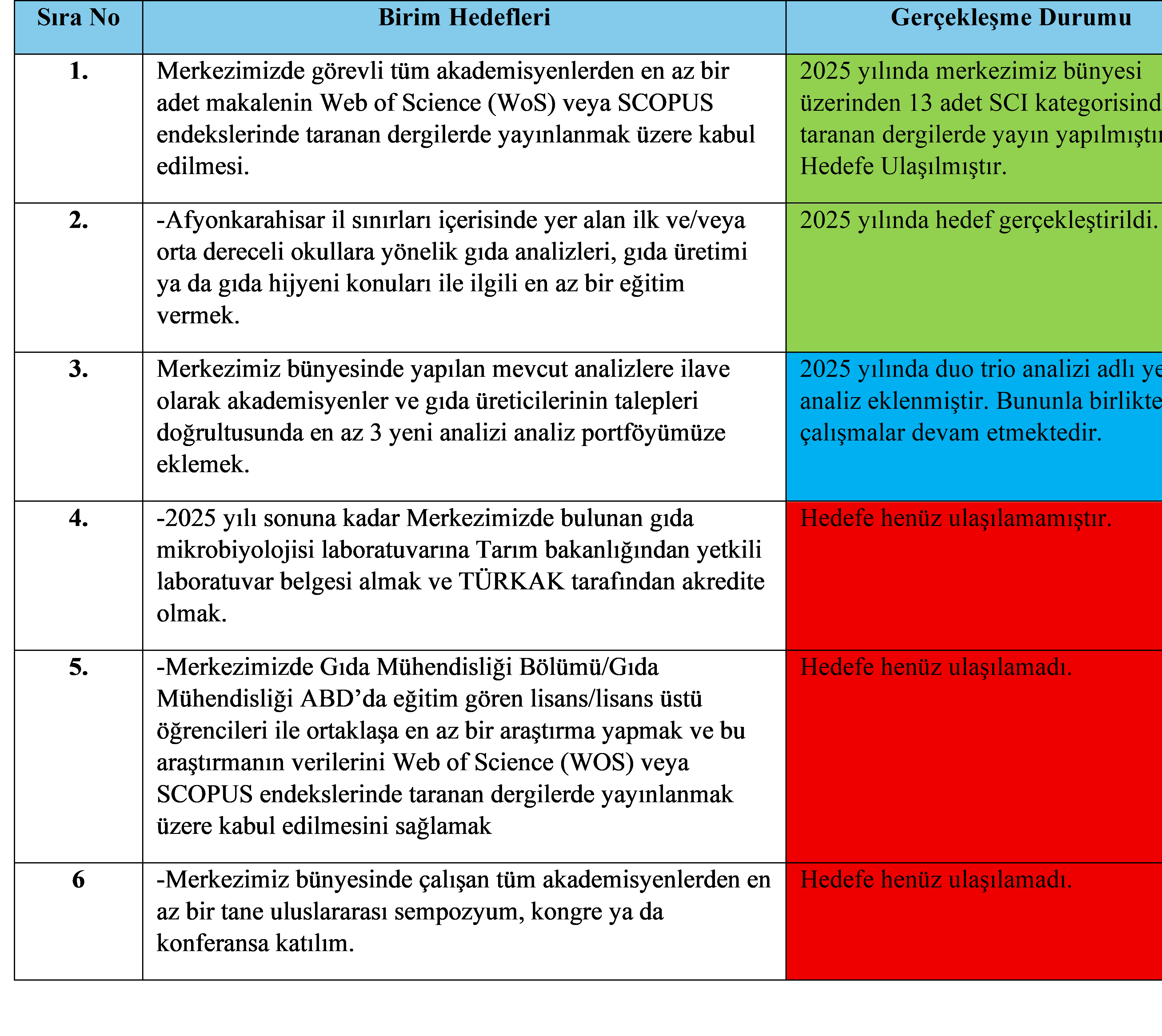 Gıda Kontrol Araştırma ve Uygulama Merkezi 2026 Yılı Hedefleri